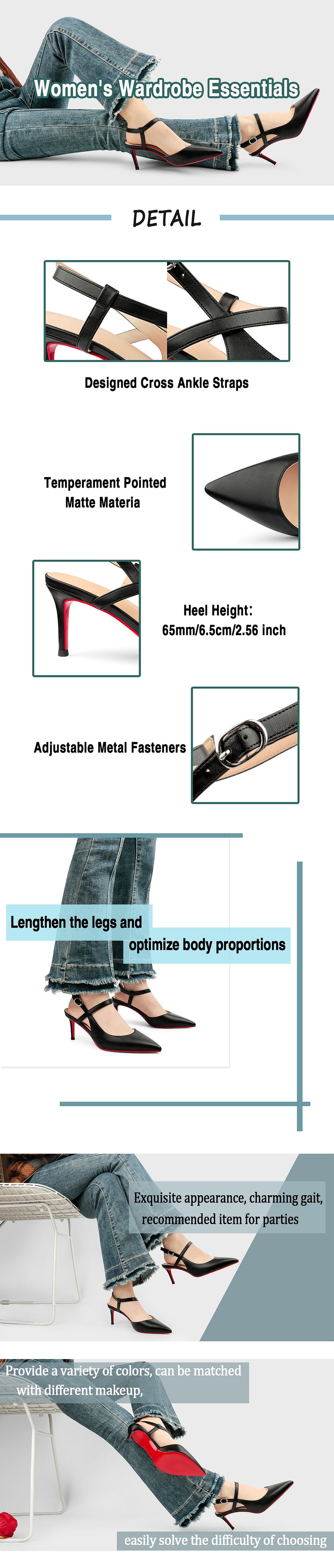 ✅Classic pointed toe pumps, strap design, comfortable to wear, won't slip.